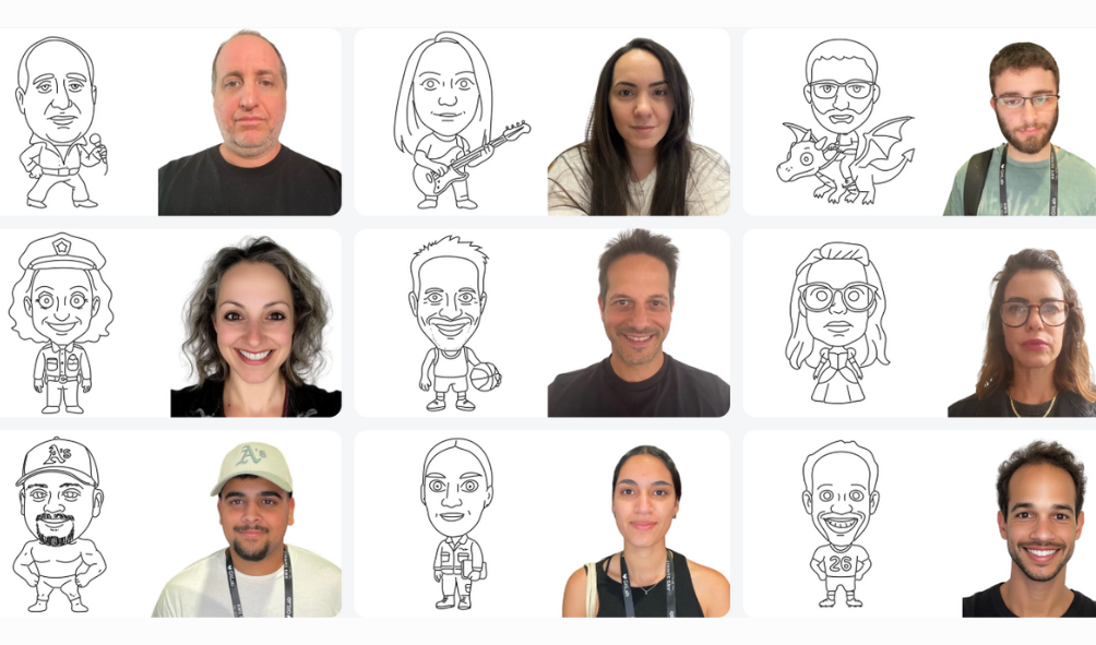 Ao final, o participante recebe sua caricatura como lembrança exclusiva. A arte pode ser entregue em versão física e também digital, pronta para compartilhar nas redes sociais.